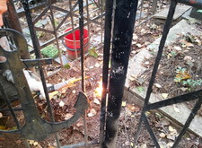 На могиле в первую очередь мы занялись оградой. Обожгли старую краску. В этот раз обжиг занял больше времени. Пришлось жечь ее в два захода.