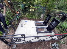 В данном заказе нам предстояло полностью благоустроить место захоронения. Клиент пожелал заменить на участке всё, кроме ограждения. Нам предстояло изготовить два классических гранитных памятника с прямоугольными цветниками, а также выложить территорию могилы брусчаткой. Первым делом мы приехали на кладбище и оценили исходное состояние места захоронения: оно поросло сорняком, а потому выглядело заброшенным.